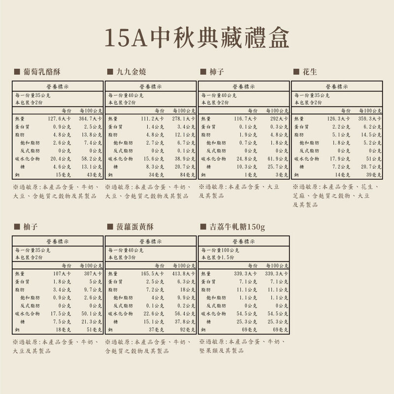 ♦過敏原資訊:本產品含蛋、牛奶、大豆、含麩質之穀物、花生、芝麻、堅果類及其製品