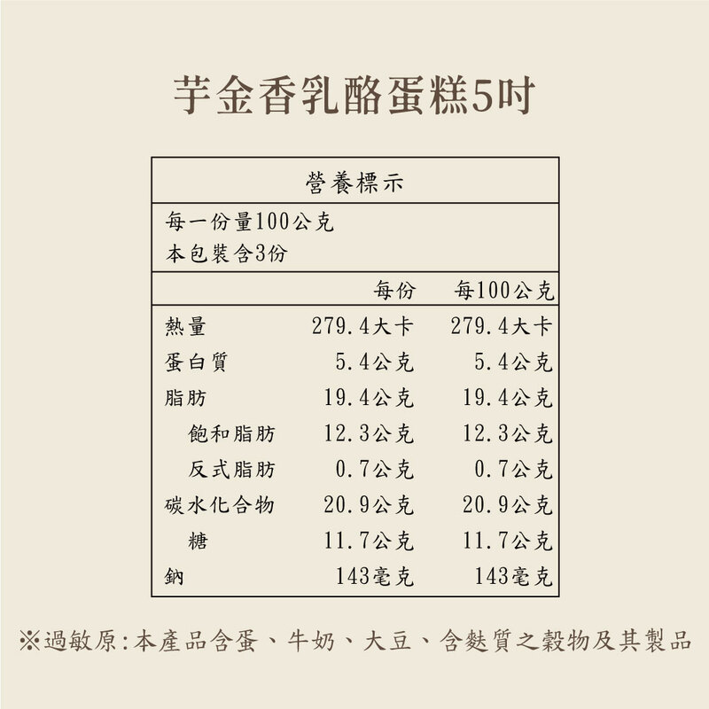 ♦過敏原資訊:本產品含蛋、牛奶、大豆、含麩質之穀物及其製品