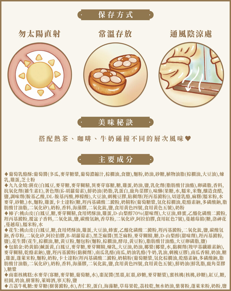 ♦過敏原資訊:本產品含有蛋、牛奶、含麩質之穀物、大豆、花生、芝麻、堅果類及其製品