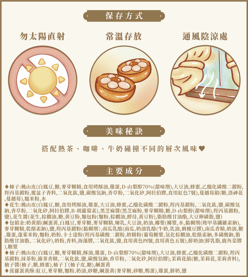 ♦過敏原資訊:本產品含蛋、牛奶、大豆、含麩質之穀物、花生、芝麻、堅果類(椰子)及其製品