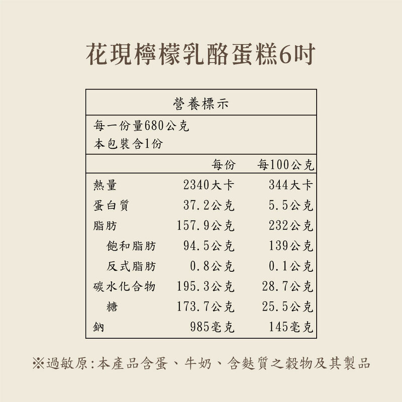 ♦過敏原資訊:本產品含蛋、牛奶、含麩質之穀物及其製品