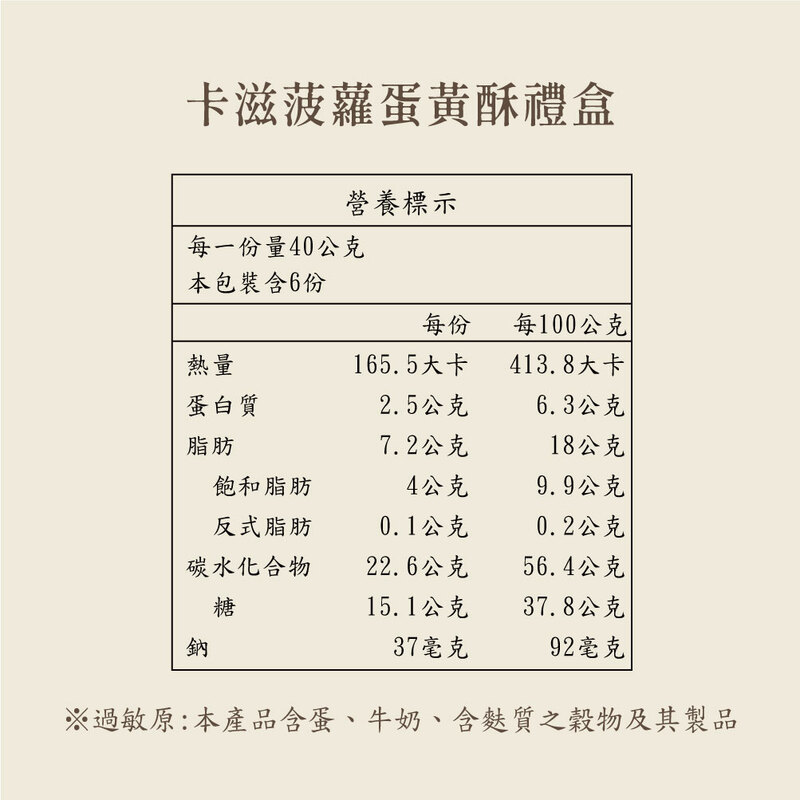 ♦過敏原資訊:本產品含蛋、牛奶、含麩質之穀物及其製品